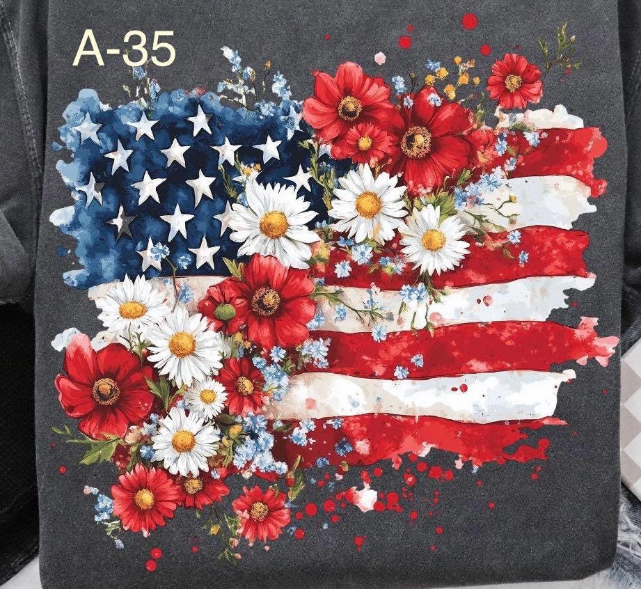 A-35 Heart Shaped American Flag, Flowers