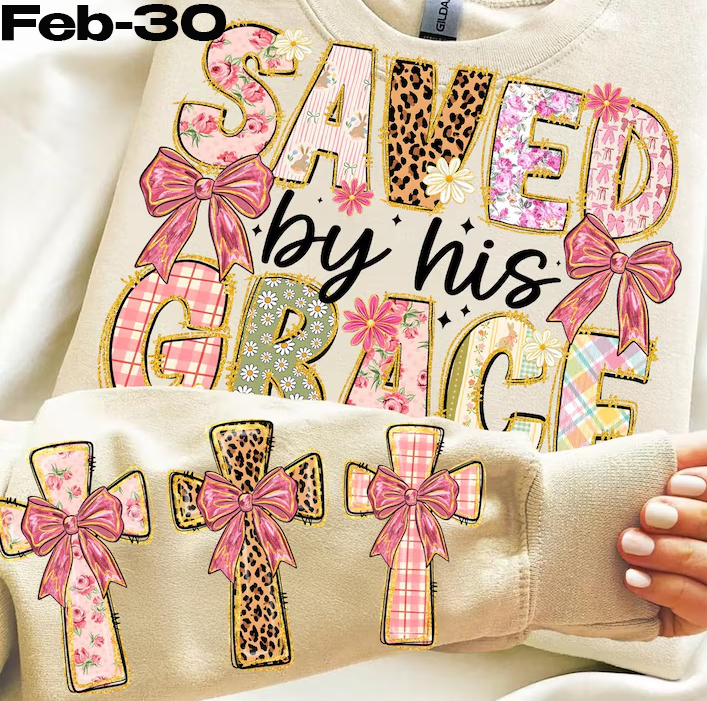 Feb-30 Saved By His Grace Three Crosses on sleeve