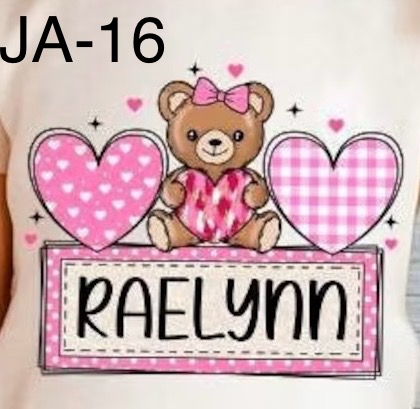 JA-16 Female Teddy Bear Pink Hearts Personalized