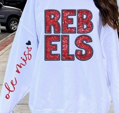 REBELS Glitter Ole Miss On Sleeve
